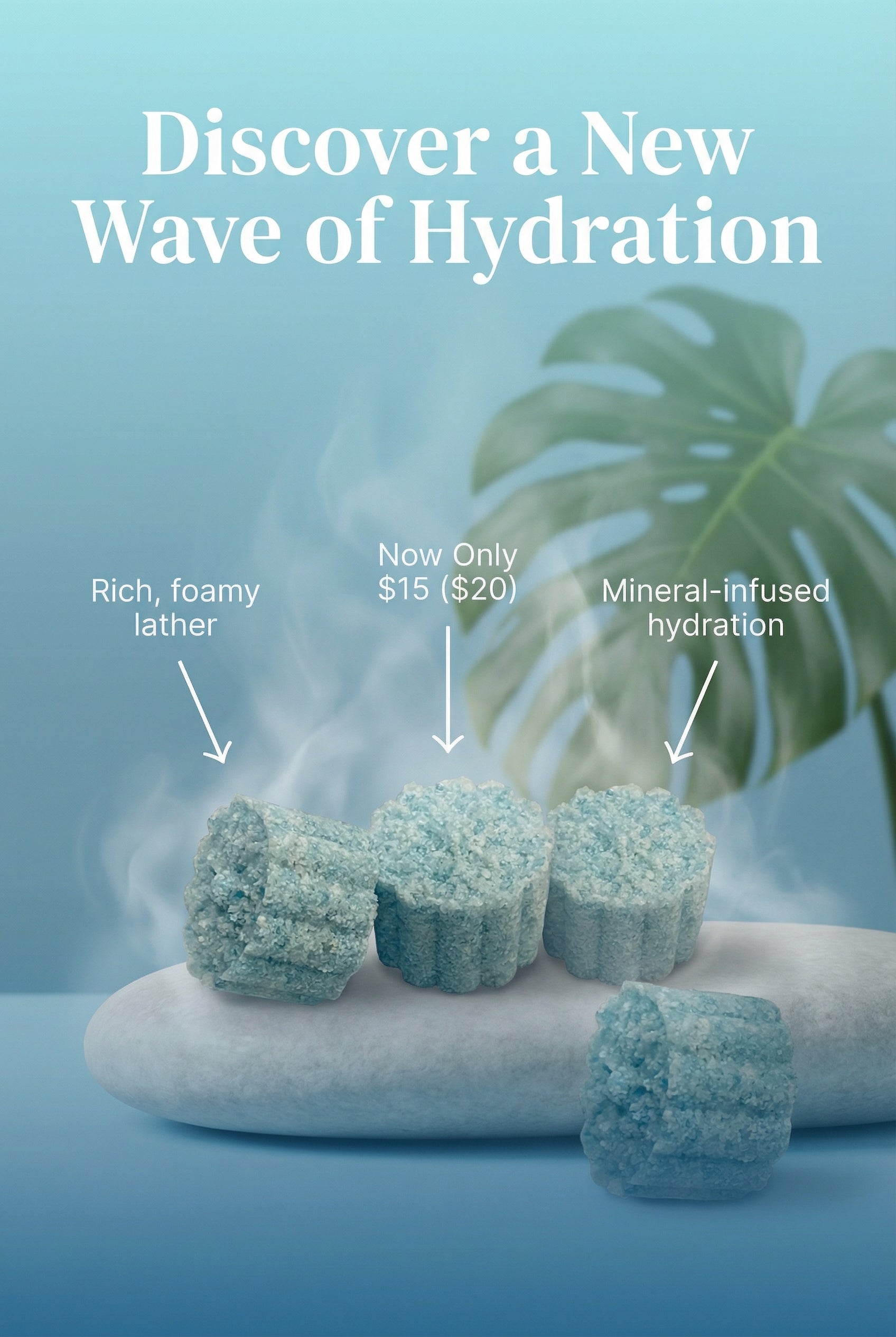 Crumble the salts under the running water to activate the gentle bubbles and aromatic oils.