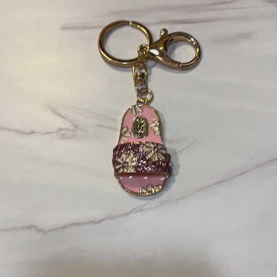 Embrace the spirit of spring and summer with the Pink Slippers Spring and Summer Rhinestones Jewels Keychain — where elegance meets playful charm in a dazzling display.