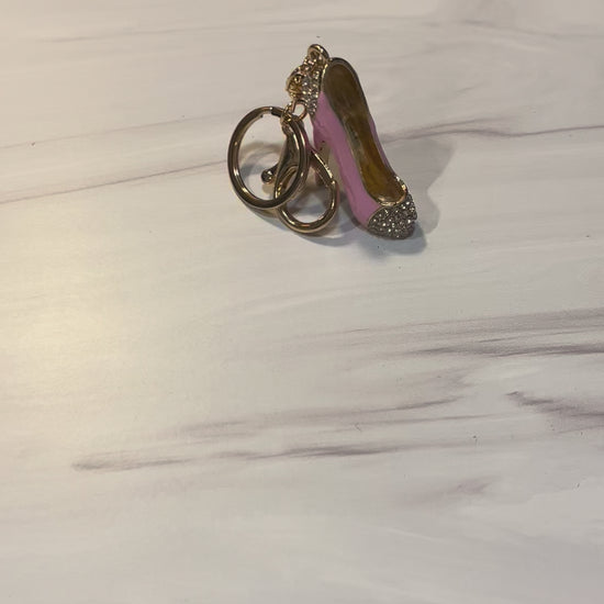 Elegant Design: The keychain features an exquisite high heel embellished with shimmering pink rhinestones, capturing the essence of sophistication and style.